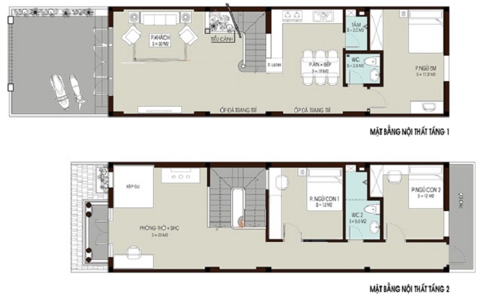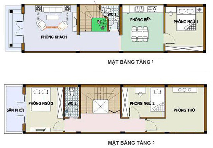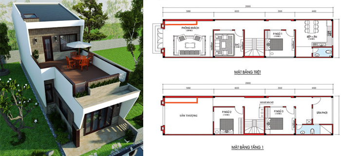 Mặt bằng mẫu nhà ống đẹp 2 tầng 1 tum