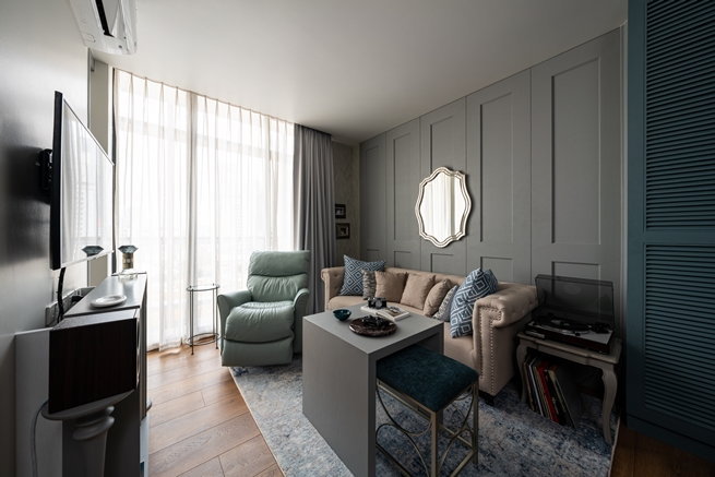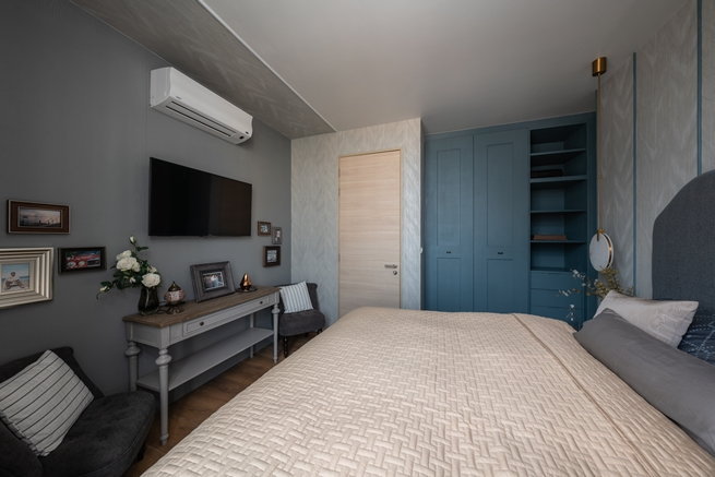 Màu xám là tông chủ đạo, là sở thích hoàn hảo của chủ nhân hai căn phòng. Và may mắn thay, các nhà thiết kế đã thấu hiểu và đưa ra lời khuyên cho cả hai. Vì vậy, đơn vị ở chung cư này phản ánh rõ ràng danh tính của cư dân.