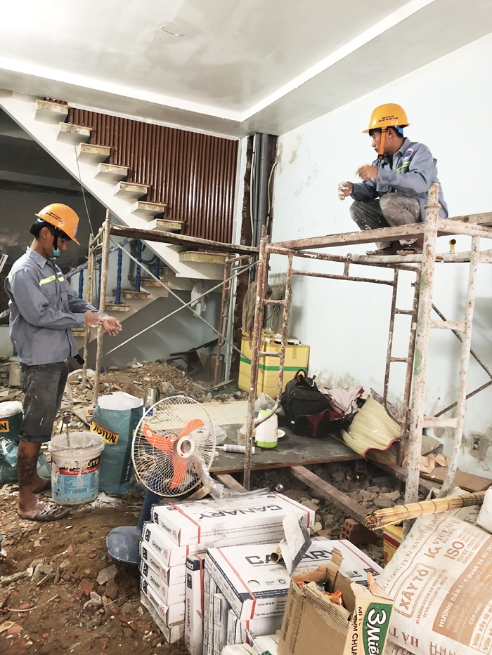 + Đội thi công thô có trách nhiệm xử lý đường ống nước âm tường nhưng không chịu trách nhiệm sơn sửa lại tường bị ố, bong tróc.