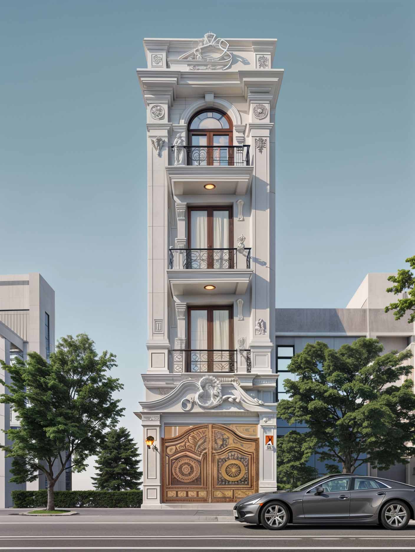 - Quy mô: nhà 1 trệt 3 lầu tum.