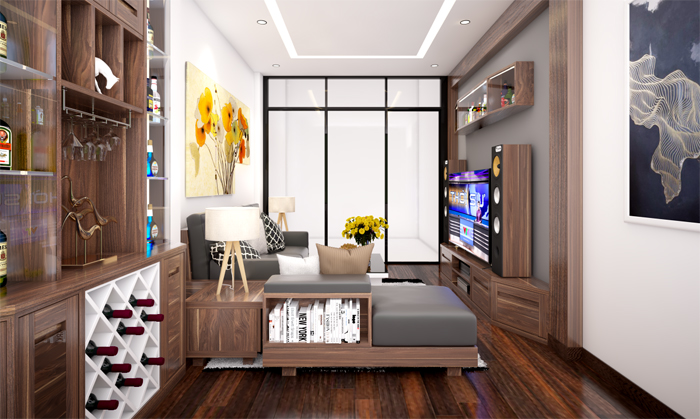 Khi bố trí không gian nội thất căn phòng không nên sử dụng các loại đồ đạt quá lớn như: một chiếc ghế sofa quá khổ trong căn phòng có diện tích hẹp. Như vậy, đồ đạt sẽ chiếm dụng hết không gian căn nhà, thay vì các đồ vật quá lớn hãy sử dụng đồ vật có kích thước phù hợp với diện tích căn phòng, một chiếc ghế nhỏ dài hoặc chiếc kệ tivi mỏng sẽ phù với với không gian phòng nhỏ sẽ giúp căn nhà trông thoáng rộng, sang trọng và hài hòa hơn rất nhiều.