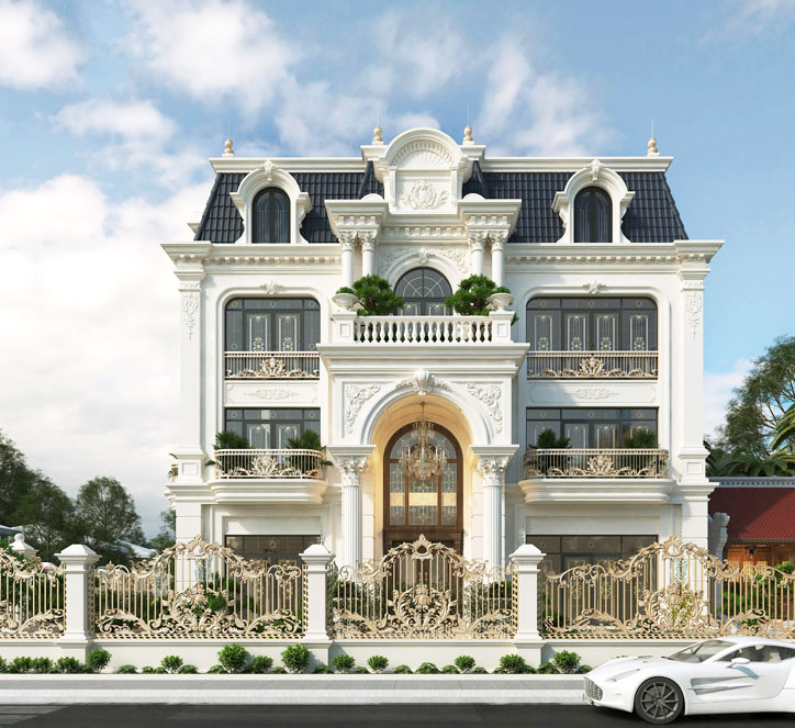 Kiến trúc cổ điển kiểu Pháp đặc trưng bởi những bức tường lớn vững chãi, hệ cột đăng đối, các đường bo mềm mại, những mảng phù điêu nổi bật và gam màu chủ đạo thanh lịch. Tất cả tạo nên một tổng thể mang cảm giác uy nghi, chỉn chu và cực kỳ thu hút. Điều đặc biệt khiến mẫu nhà cổ điển kiểu Pháp không bị lỗi thời chính là sự cân bằng giữa nghệ thuật thiết kế và kết cấu công trình, giữa hình thức sang trọng và sự tiện nghi thực tế trong sinh hoạt hằng ngày. Đối với những gia chủ mong muốn một căn nhà có giá trị thẩm mỹ vượt thời gian, không chạy theo xu hướng ngắn hạn và luôn giữ được sự sang trọng suốt nhiều năm, phong cách cổ điển kiểu Pháp là lựa chọn xứng đáng.
