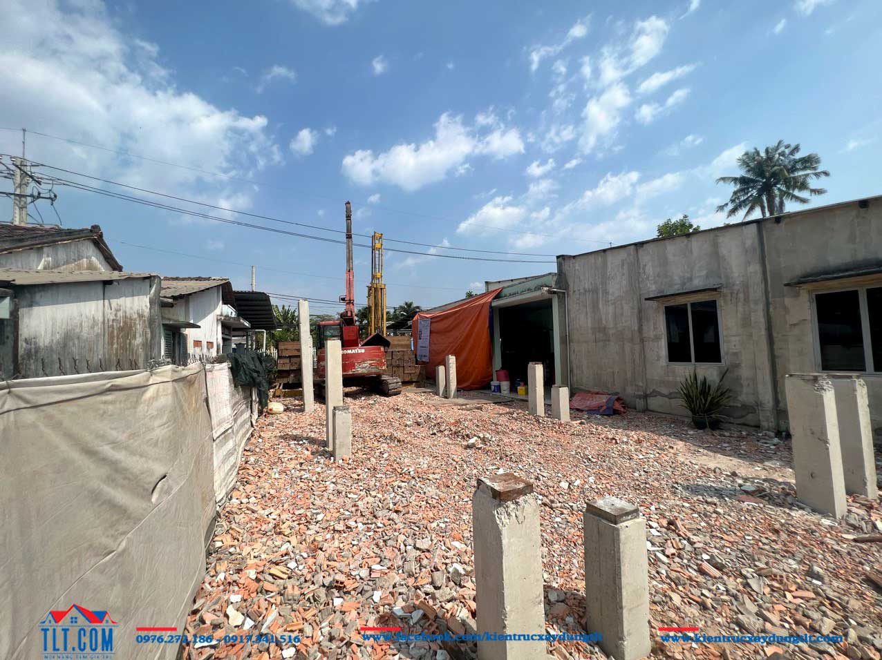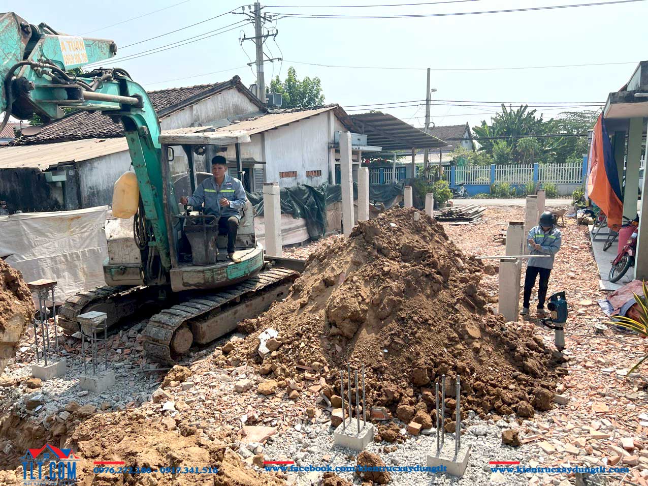 - Chuẩn bị mặt bằng: San lấp mặt bằng, thi công cọc chống, đào hố móng.