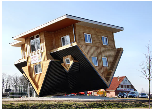 Ngôi nhà được đặt tên là Crazy House thuộc bispingen Đức, được thiết kế với hình dáng của một ngôi nhà bị lật ngược. Căn nhà được thiết kế bởi kiến trúc sư Klaudiusz Golos và Sebastion Mikuciuk, họ muốn thực hiện một căn nhà thực sự khác biệt. Ngôi nhà không những lộn ngược với dáng vẽ và hình dáng bên ngoài mà các đồ vật nội thất bên trong cũng đều được lộn ngược.