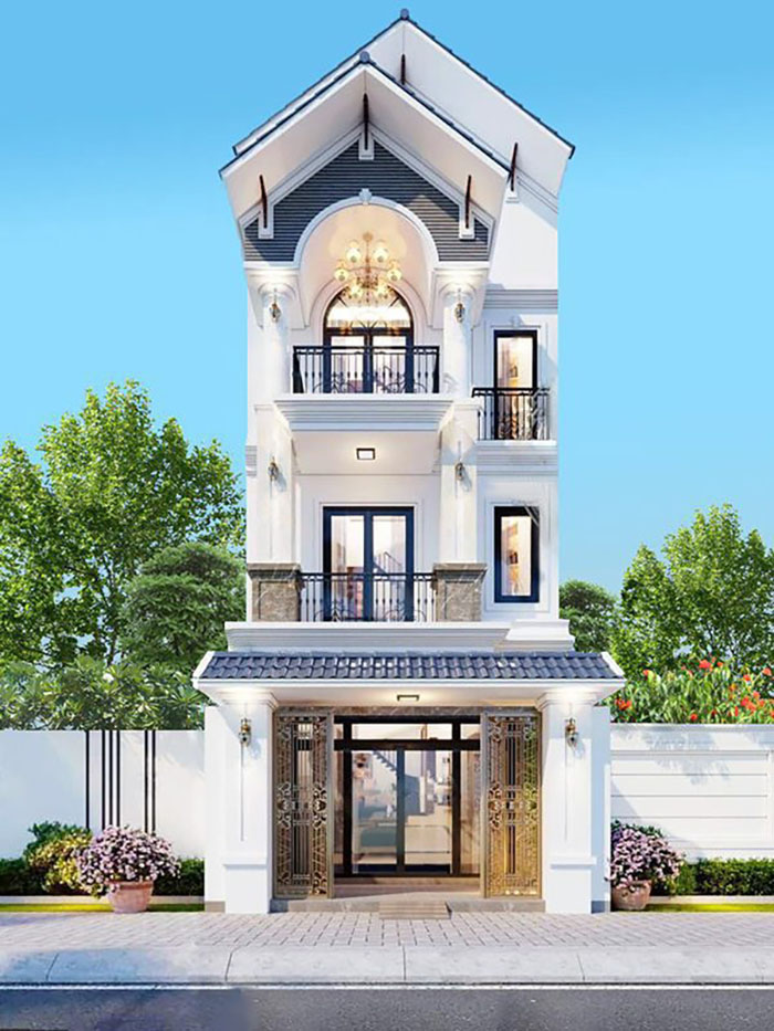 Đối với những ai yêu thích sự nổi bật mang phong cách tân cổ điển kết hợp hơi hướng kiểu Pháp thì mẫu nhà phố này sẽ là sự lựa chọn vô cùng hợp lý.
