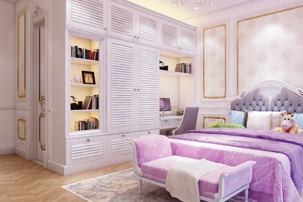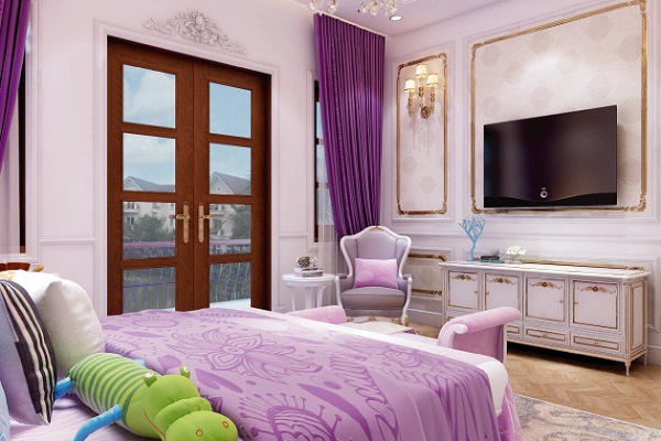 Thiết kế nội thất phòng ngủ màu tím cho con gái
