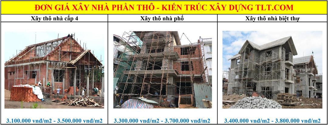 Đơn giá xây nhà trọn gói Cần Giuộc chịu ảnh hưởng nhiều vào các yếu tố như: vị trí xây dựng, diện tích thi công, loại hình xây dựng, chất lượng vật liệu thi công. Dưới đây là bảng báo giá xây nhà gồm giá xây nhà phần thô và giá xây nhà trọn gói được niêm yết tại công ty CP Kiến Trúc Xây Dựng TLT.Com, quý khách có thể tham khảo thêm.