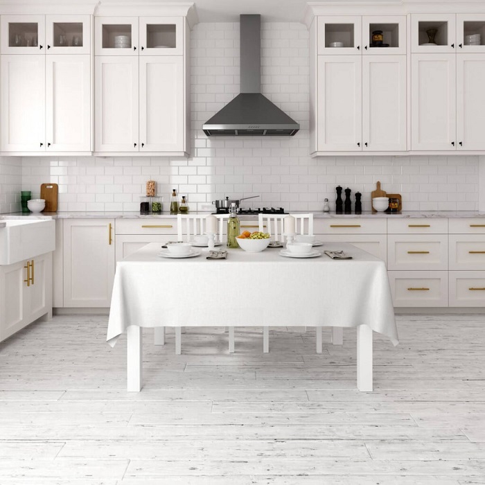 Tất cả những đặc điểm này đều được yêu cầu trong một căn phòng đông người. Màu trắng cũng có tác dụng làm dịu không gian không gian nhà bếp.
